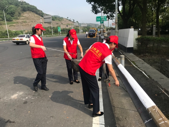 圖為志愿活動(dòng)現(xiàn)場(chǎng) “這邊有可樂瓶、邊溝上有塑料罐。” 另一邊由吳偉麗、周戰(zhàn)帶隊(duì)的一行女同志,對(duì)收費(fèi)所周邊互通匝道、及沿線綠化帶等區(qū)域進(jìn)行清撿。不好夾就用手撿、拾不起來就用手摳。大家發(fā)揚(yáng)不怕苦、不怕累、不怕臟的精神,一路走走停停,將收費(fèi)區(qū)域、綠化帶的塑料袋、紙巾、煙蒂等垃圾及邊溝的淤泥都被清理得干干凈凈,使得周邊區(qū)域環(huán)境煥然一新。 此次活動(dòng),大家不畏艱苦,冒著炎炎烈日,對(duì)路面垃圾清理、倒樹處理、物資搬運(yùn)等工作積極奮戰(zhàn)。經(jīng)過一個(gè)上午的通力合作,所內(nèi)及周邊環(huán)境大為改觀。 臨海南收費(fèi)所黨員們真正做到“平常時(shí)候看得出,關(guān)鍵時(shí)刻站得出”,以共產(chǎn)黨員的模范行動(dòng),挺身在前,將災(zāi)后恢復(fù)工作各項(xiàng)措施落到實(shí)處。 陳瑩