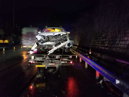 當(dāng)天18:16分左右,該隧道內(nèi)還發(fā)生了一起嚴(yán)重追尾事故,一輛寶馬X3在進(jìn)入隧道之前由于車速過(guò)快避讓不急,狠狠的與前方一輛大貨車發(fā)生追尾,被撞得慘不忍睹。所幸車上只有駕駛員一人且系了安全帶并未受傷。