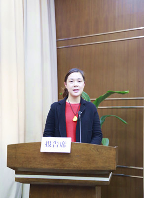 圖為公司財務(wù)總監(jiān)章彩霞在宣讀議案