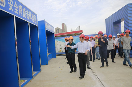 臺州基投集團公司副董事長、總經理王輝帶領導大家參觀了安全生產體驗區和浙江大學臺州研究院(臺州科技城綜合區)項目建設現場,介紹了公司的發展狀況、“五新”發展經驗,企業文化理念、愿景和核心價值觀,以及工程管理工作經驗。