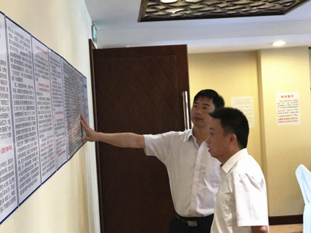 圖為集團(tuán)副總經(jīng)理陳保衛(wèi)正在檢查收購(gòu)點(diǎn)宣傳資料