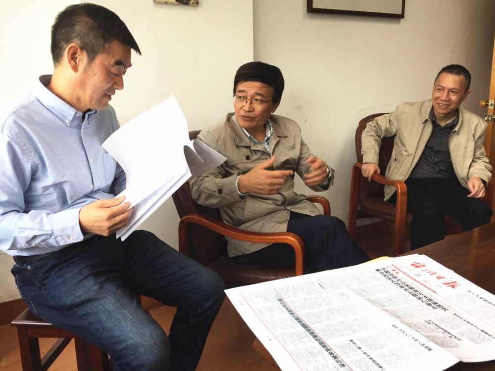 圖為市國資委主任徐豪和集團(tuán)總經(jīng)理張建平一起走訪市國稅局股東單位