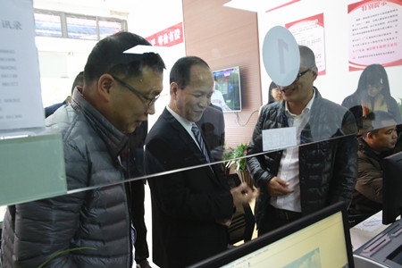 圖為副市長張加波在窗口查看股東股權轉讓情況
