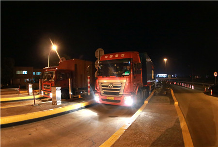 臺州南、溫嶺西收費(fèi)所,分流9點(diǎn)開始,由于夜間通行貨車居多,每輛需計(jì)重收費(fèi),且夾雜綠農(nóng)車,情況復(fù)雜,分流1個(gè)小時(shí)后出口車道已排成車燈長龍,壓力巨大。“路口協(xié)警一定要守住第一道防線,不能讓任何車輛進(jìn)入!”富有經(jīng)驗(yàn)的所長王益民已在車道上與交通協(xié)管員一起指揮疏導(dǎo)交通了。從晚上10點(diǎn)到凌晨6點(diǎn),持續(xù)奮戰(zhàn)8個(gè)小時(shí),在有限的具有稱重能力車道的情況下,臺州南、溫嶺西共完成了5千多輛車的收費(fèi)工作,流量相比平時(shí)增加一倍。