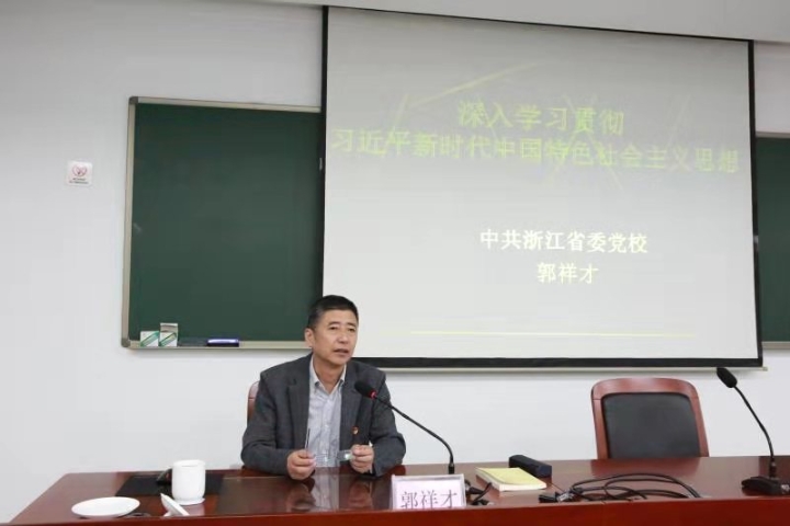 圖為省委黨校哲學(xué)教研部原主任、教授郭祥才以《習(xí)近平新時(shí)代中國(guó)特色社會(huì)主義思想》為題授課