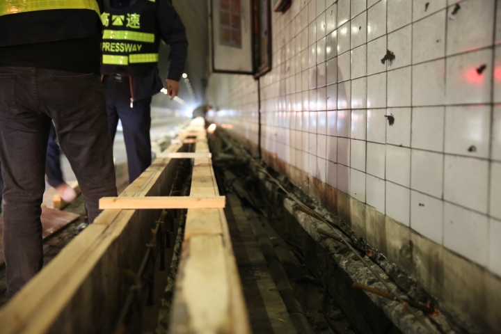 黃土嶺隧道原本設(shè)計(jì)邊溝高度25公分,目前車流量已超飽和狀態(tài),極易發(fā)生事故,一旦事故發(fā)生,車輛容易騎上邊溝,撞擊隧道壁,存在重大安全隱患,現(xiàn)有邊溝設(shè)計(jì)高度已不能很好滿足安全運(yùn)營(yíng)需要。為了解決這個(gè)問題,此次隧道施工將抬高邊溝至40公分。施工現(xiàn)場(chǎng),施工人員正在分成多組進(jìn)行邊溝植筋立模。施工現(xiàn)場(chǎng),多卷巨大的電纜線已經(jīng)進(jìn)場(chǎng),施工人員正在分成多組進(jìn)行邊溝植筋立模。