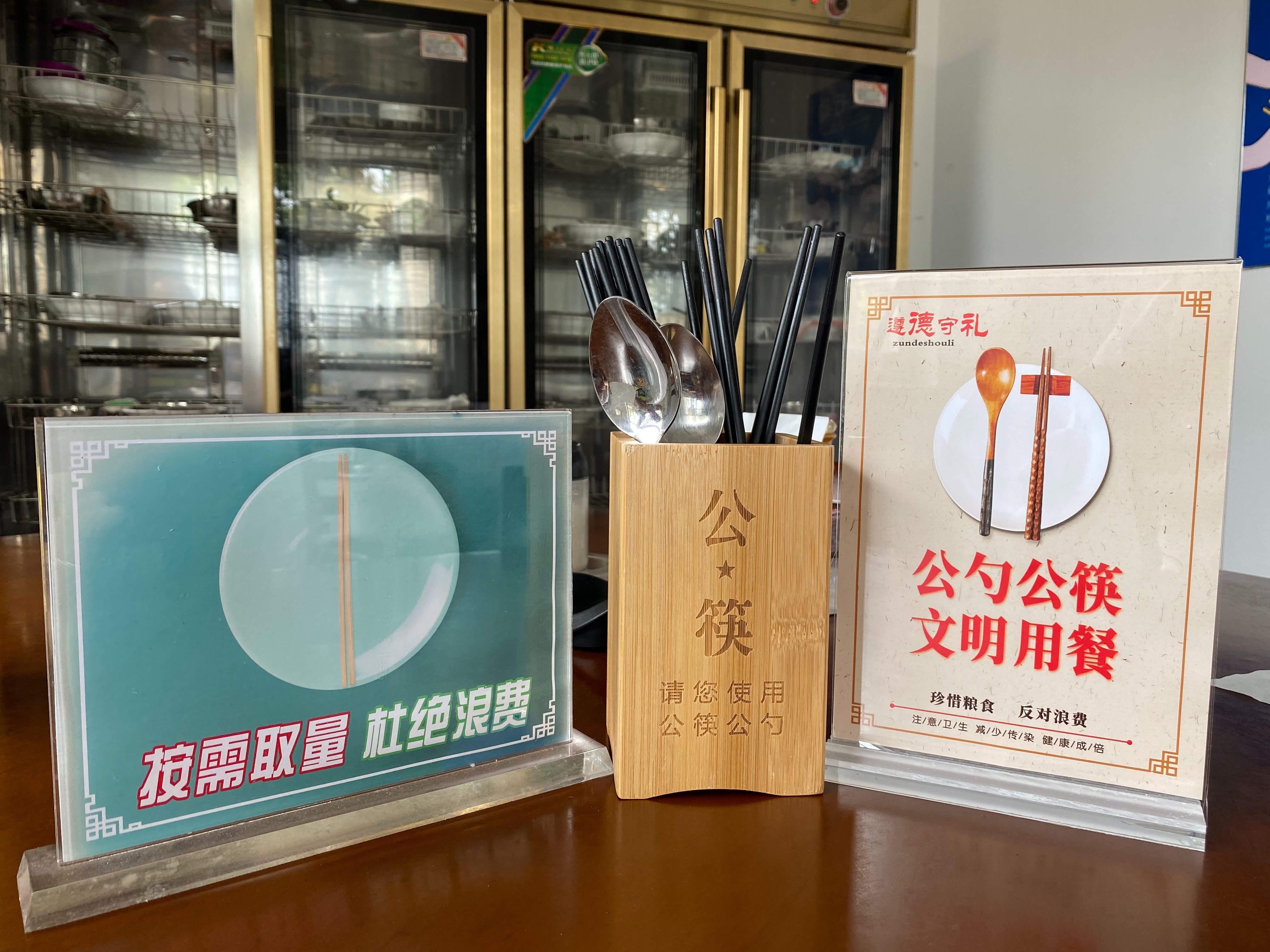 該所通過(guò)食堂粘貼宣傳畫(huà)、餐桌放置宣傳標(biāo)牌、設(shè)置公用筷子筒等多種方式進(jìn)行廣泛宣傳,以此提升“反對(duì)浪費(fèi)、公筷公勺、文明健康”的活動(dòng)知曉率,促進(jìn)全體員工積極參與,引導(dǎo)員工自覺(jué)杜絕“舌尖上的浪費(fèi)”。
