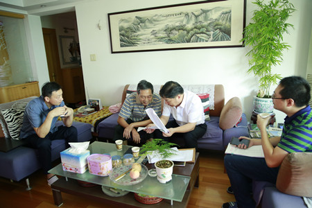圖為公司總經(jīng)理助理了解摸底老干部的持股情況