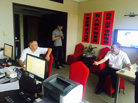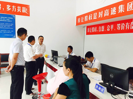 圖為集團(tuán)副董事長、總經(jīng)理張建平在天臺收購點(diǎn)詳細(xì)詢問收購工作具體開展情況 張建平向各地方政府前期對公司股權(quán)收購工作的支持表示感謝,他介紹了當(dāng)?shù)嘏_州高速股權(quán)收購進(jìn)展情況,同時(shí)闡明收購工作中存在的困難,需要地方政府繼續(xù)對我們的工作給予支持和幫助。三地政府都表示一定會全力支持這項(xiàng)工作。仙居縣分管公司股權(quán)收購的常務(wù)副縣長說,“放心吧,我們一起想辦法,先從持股較多的法人股入手,再化大力氣做小股東工作,一定會圓滿完成任務(wù)。” 張建平一行先后來到三地股權(quán)收購點(diǎn),向收購一線的工作人員表示親切的問候。張建平對大家的工作給予肯定,感謝所有人勤勤懇懇,無私付出,并希望大家繼續(xù)努力,共同實(shí)現(xiàn)目標(biāo)。工作人員詳細(xì)介紹了日常具體工作方法,他們緊跟公司股權(quán)收購總體布局,并結(jié)合當(dāng)?shù)靥厥馇闆r,因地制宜,有序靈活地開展股權(quán)收購工作。