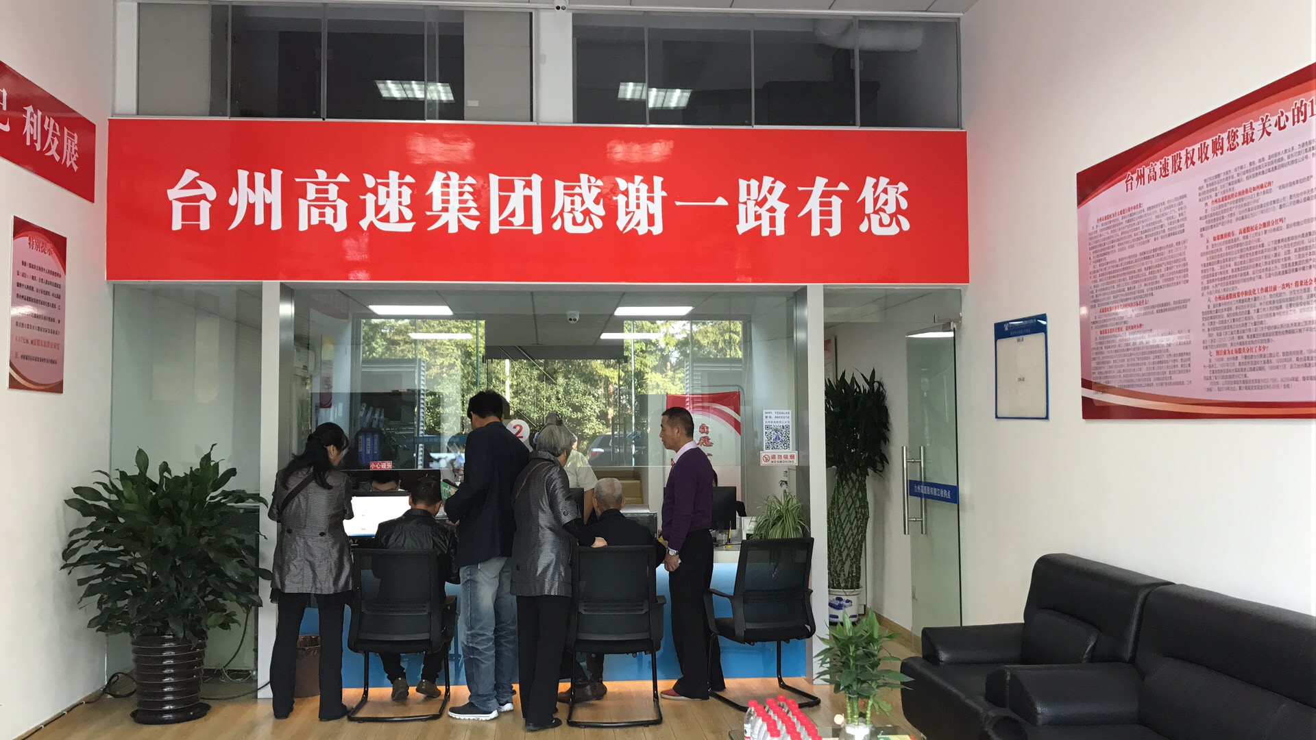 圖為椒江收購點現場 不巧的是,剛好收購點的股東特別多,輪到老兩口辦理得等待些時間,正好他們可以坐著仔細看看收購點的各類宣傳資料,等待中友好而耐心。 當問及王阿姨是哪年購買臺州高速股權的,她邊說邊小心地拿出一張一張發黃的原始資料,“可早啦,94年買的呢,估計你那時都還沒上學呢。”原來她是替臺州市椒江星明實業總公司辦理法人股轉讓的。作為工作多年的財務人員,她對待每個辦理環節都甚是仔細。架著一副老花眼鏡的她,坐在工作人員的身旁,耐心地問清轉讓疑問,逐字地看著股權轉讓協議書,認真地填好股權轉讓款單,不管是簽字還是蓋章都不慌不忙。 “年輕人,你們可也得把資料看看仔細,如果出差錯讓我再來,那可得你們準備好出場費請我來哦。”王阿姨開著玩笑對工作人員說道。 陳林偉