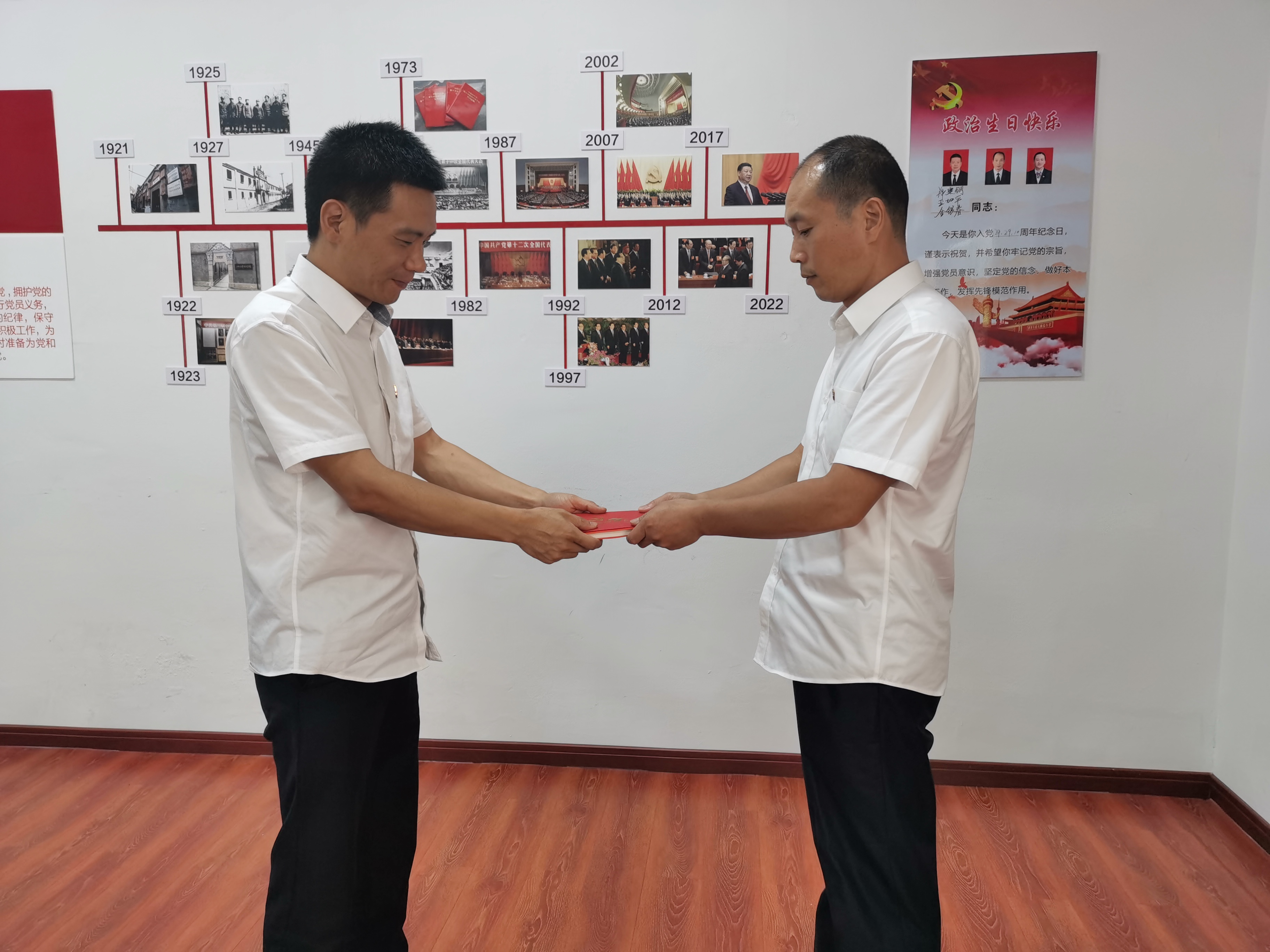 最后,全體黨員重溫入黨誓詞,站在黨旗下莊嚴地宣讀入黨誓詞,鏗鏘有力的聲音震撼了每一位黨員的心靈。 活動過后,黨員紛紛表示,記住自己的“政治生日”是黨員對黨的信仰,紀念自己的“政治生日”是黨員對黨的感激。他們會時刻提醒自己是一名黨員,在工作和生活中用黨員的身份嚴格要求自己,勇挑重擔,發揮先鋒模范作用,為群眾做出表率。 陳智慧