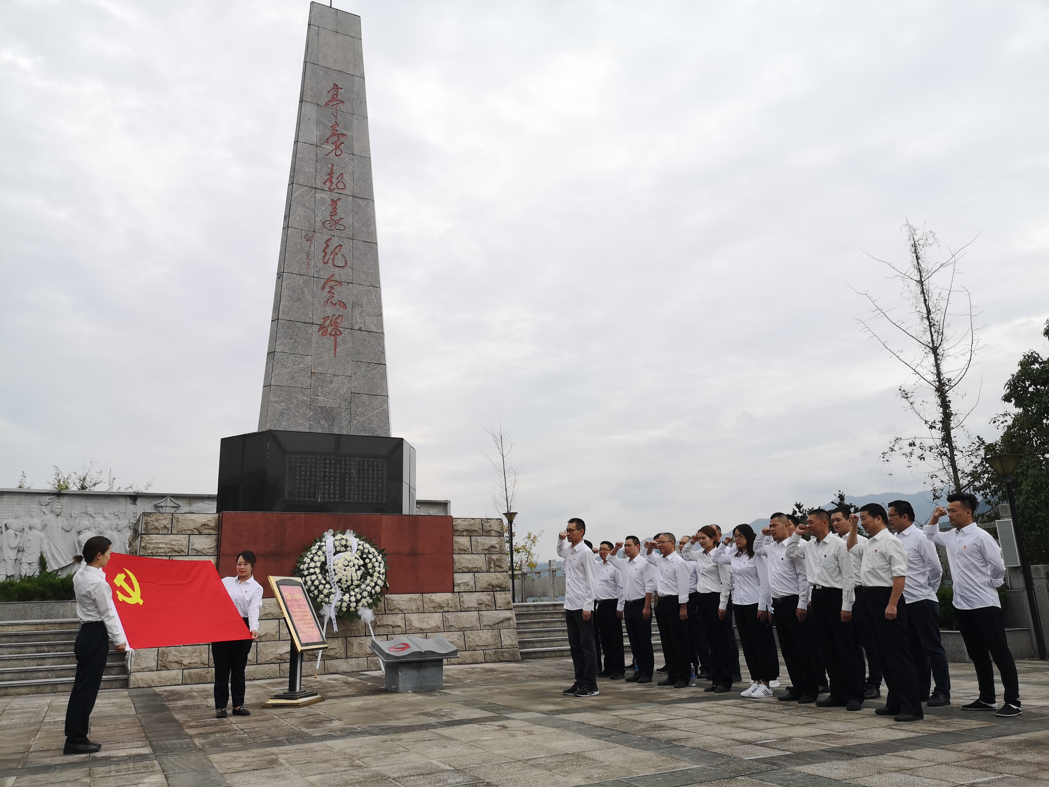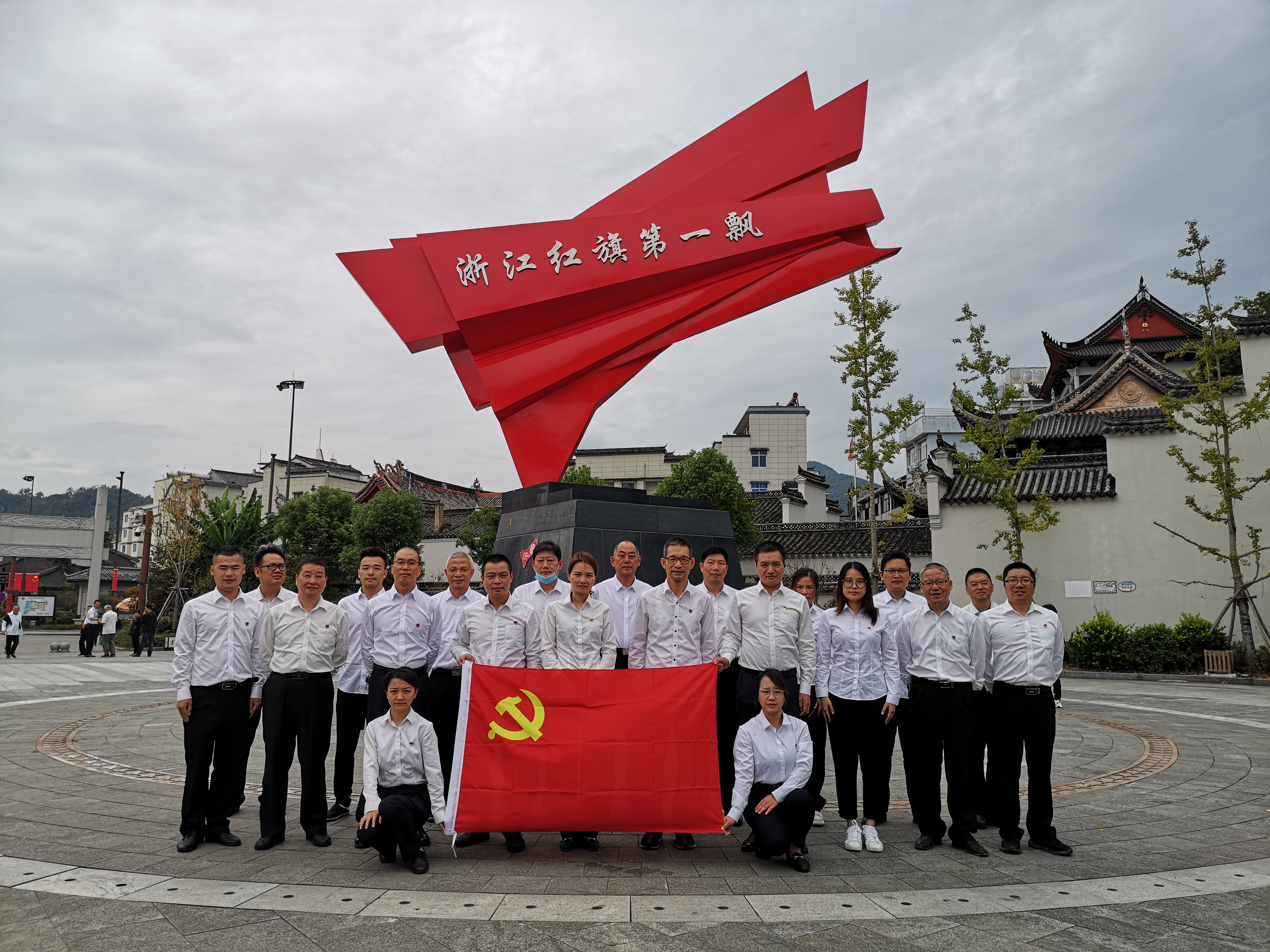 (圖為紀(jì)念碑黨員合影) 亭旁起義打響了浙東武裝奪取政權(quán)的第一槍,建立了浙江第一個(gè)蘇維埃政權(quán),被譽(yù)為“浙江紅旗第一飄”。 黨員同志們沿著先烈們的足跡,接受著紅色精神的洗禮。在亭旁起義紀(jì)念碑下,同志們重溫入黨誓詞;在紀(jì)念館,聆聽亭旁起義的歷史;在城隍廟,感受紅色區(qū)域的家國情懷……黨員們紛紛表示,一定會(huì)銘記歷史、繼承傳統(tǒng)。