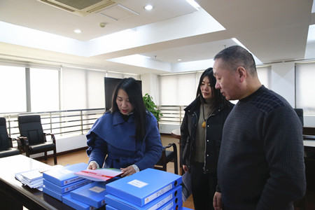圖為檢查組檢查財(cái)務(wù)臺賬現(xiàn)場